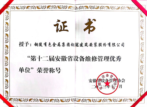 • 第十二屆安徽省設(shè)備維修管理優(yōu)秀單位